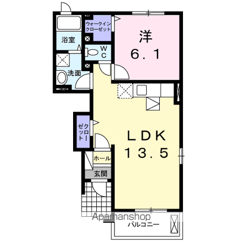 | 間取り詳細 | 洋室(6.1帖)、LDK(13.5帖) | ||
