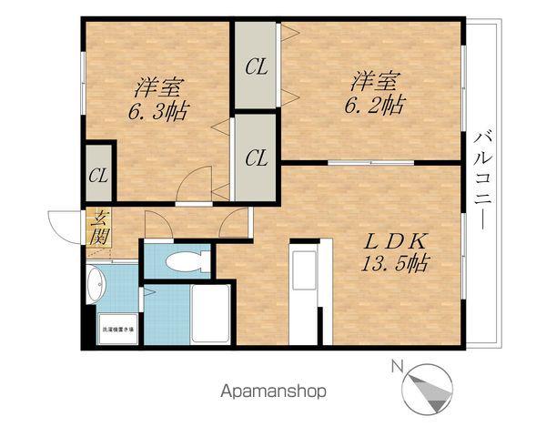 | 間取り詳細 | LDK(13.5帖)、洋室(6.2帖)、洋室(6.3帖) | ||