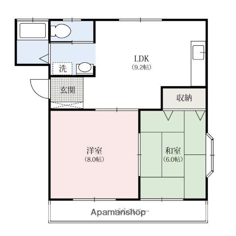 | 間取り詳細 | 洋室(8帖)、和室(6帖)、DK(9.2帖) | ||