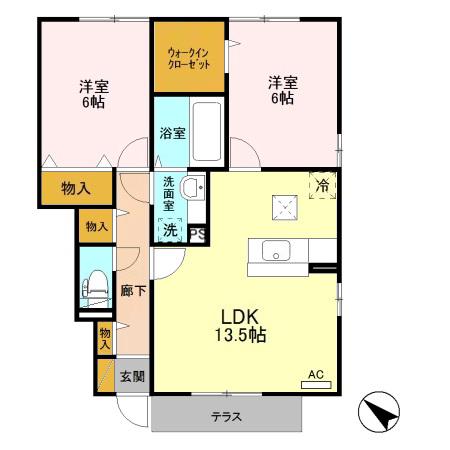 | 間取り詳細 | LDK(13.5帖)、洋室(6帖)、洋室(6帖) | ||