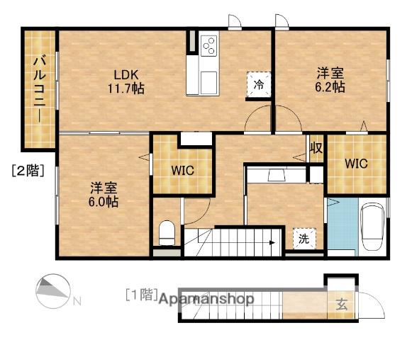 | 間取り詳細 | LDK(11.7帖)、洋室(6.2帖)、洋室(6帖) | ||
