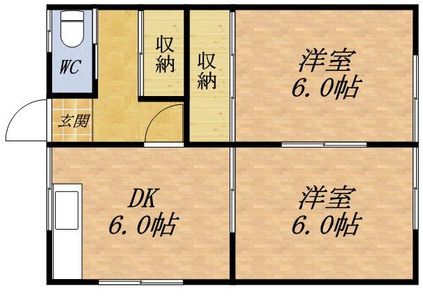 | 間取り詳細 | DK(6帖)、洋室(6帖)、洋室(6帖) | ||