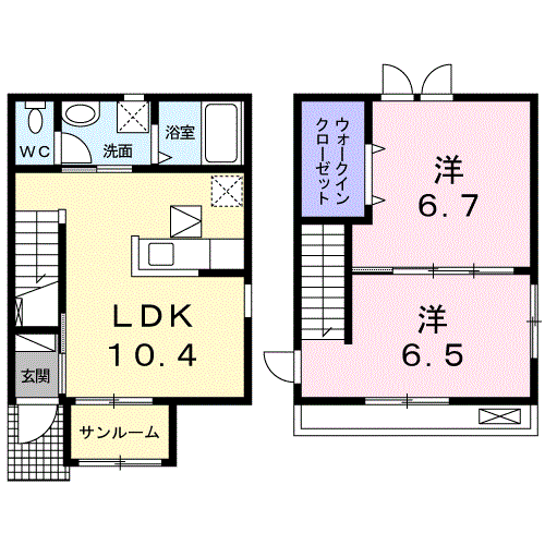 | 間取り詳細 | LDK(10.4帖)、洋室(6.7帖)、洋室(6.5帖) | ||
