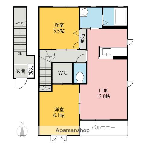 | 間取り詳細 | LDK(12.8帖)、洋室(6.1帖)、洋室(5.5帖) | ||