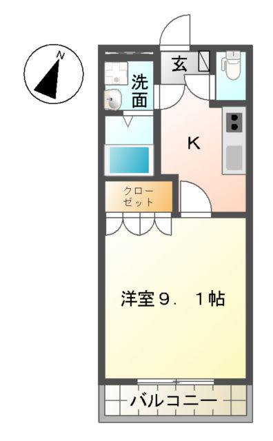 | 間取り詳細 | K(3帖)、洋室(9.1帖) | ||