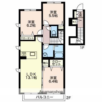 | 間取り詳細 | LDK(13.2帖)、洋室(7.4帖)、洋室(7.4帖) | ||