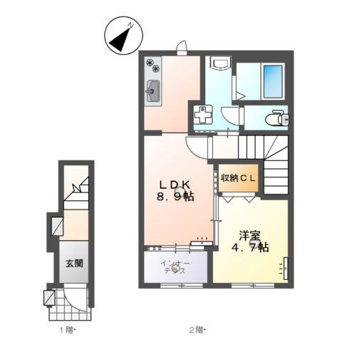 | 間取り詳細 | LDK(8.9帖)、洋室(4.7帖) | ||