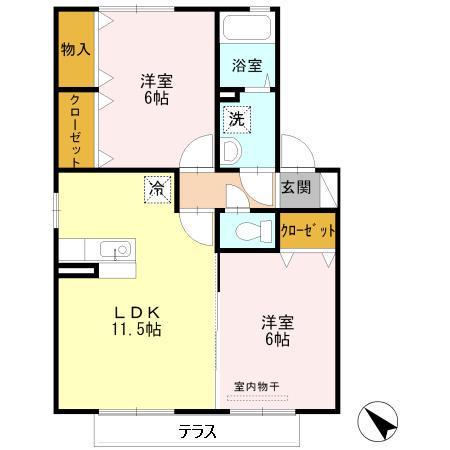 | 間取り詳細 | 洋室(6帖)、洋室(6帖)、LDK(11.5帖) | ||