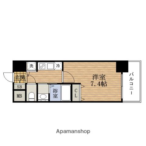 | 間取り詳細 | 洋室(7.4帖)、K(2帖) | ||
