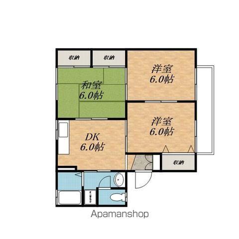 | 間取り詳細 | DK(6帖)、和室(6帖)、洋室(6帖)、洋室(6帖) | ||