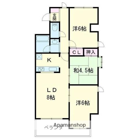 | 間取り詳細 | LDK(8帖)、洋室(6帖)、洋室(6帖)、和室(4.5帖) | ||