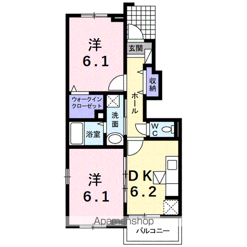 | 間取り詳細 | 洋室(6.4帖)、洋室(6.1帖)、LDK(12.2帖) | ||