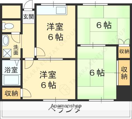 | 間取り詳細 | DK(6帖)、和室(6帖)、和室(6帖)、洋室(6帖) | ||