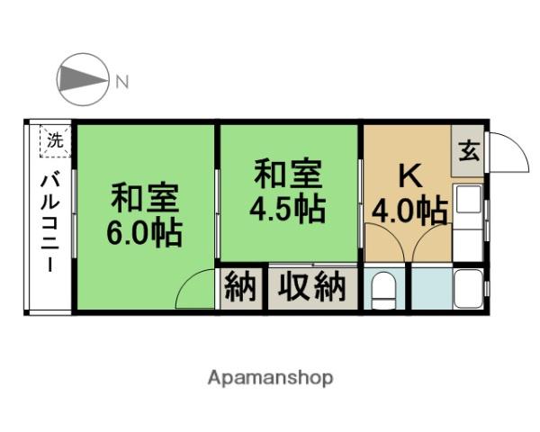 | 間取り詳細 | K(4帖)、和室(4.5帖)、和室(6帖) | ||