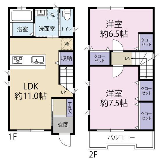| 間取り詳細 | LDK(11帖)、洋室(7.5帖)、洋室(6.5帖) | ||