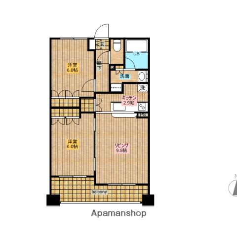 | 間取り詳細 | LD(9.5帖)、K(2.9帖)、洋室(6帖)、洋室(6帖) | ||
