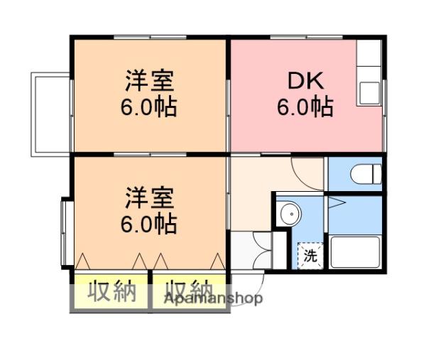| 間取り詳細 | DK(6帖)、洋室(6帖)、洋室(6帖) | ||