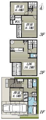 - 空有 駐車場 1台分込み ※サイズ要確認 ビルトインガレージ