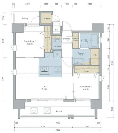 | 間取り | 2LDK | 専有面積 | 53.87m2 |