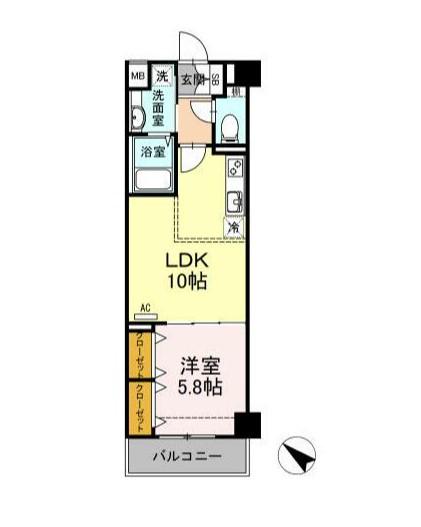 | 間取り詳細 | 洋室(5.8帖)、LDK(10帖) | ||