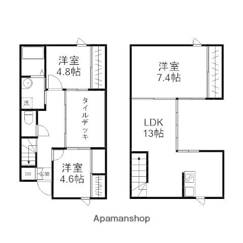 | 間取り詳細 | 洋室(4.6帖)、洋室(4.8帖)、洋室(7.4帖)、LDK(13帖) | ||