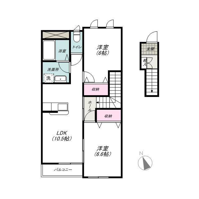 | 間取り詳細 | LDK(10.5帖)、洋室(6.6帖)、洋室(6帖) | ||