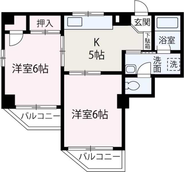 | 間取り詳細 | K(5帖)、洋室(6帖)、洋室(6帖) | ||