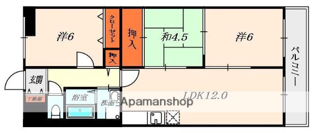 | 間取り詳細 | LDK(12帖)、洋室(6帖)、洋室(6帖)、和室(4.5帖) | ||