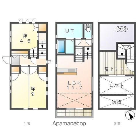 | 間取り詳細 | LDK(11.7帖)、洋室(9帖)、洋室(4.5帖) | ||