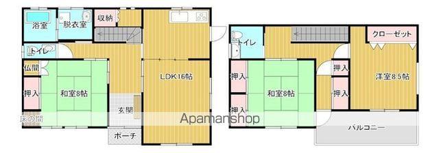| 間取り詳細 | LDK(16帖)、洋室(8.5帖)、和室(8帖)、和室(8帖) | ||