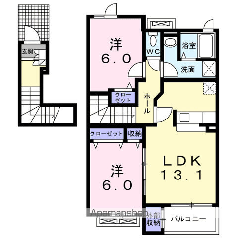 アパート フレグランス信濃(2DK/2階) | |||||||