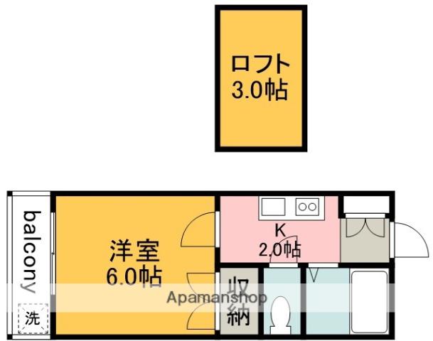 | 間取り詳細 | 洋室(6帖)、K(2帖) | ||