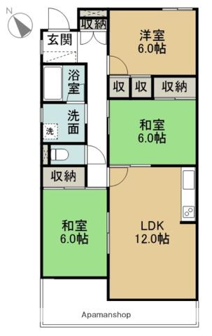 | 間取り詳細 | LDK(12帖)、和室(6帖)、和室(6帖)、洋室(6帖) | ||