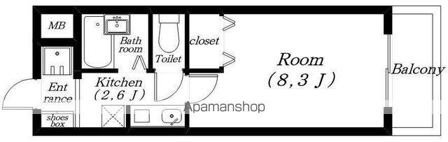 | 間取り詳細 | K(2.6帖)、洋室(8.3帖) | ||