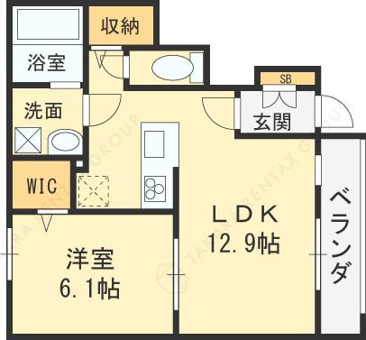 | 間取り詳細 | LDK(12.9帖)、洋室(6.1帖) | ||