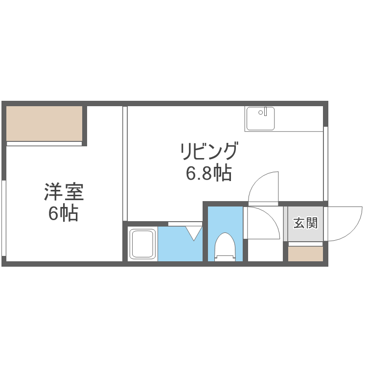 | 間取り詳細 | DK(6.8帖)、洋室(6帖) | ||