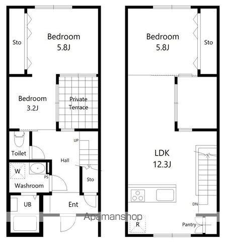 | 間取り詳細 | LDK(12.3帖)、洋室(5.8帖)、洋室(3.2帖)、洋室(5.8帖) | ||