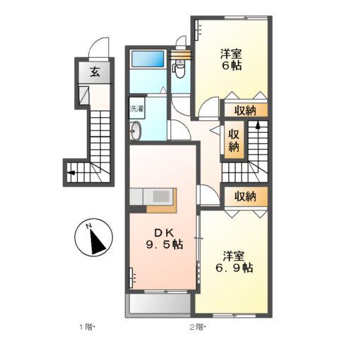 | 間取り詳細 | DK(9.5帖)、洋室(6.9帖)、洋室(6帖) | ||