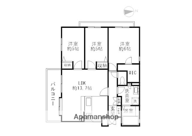 | 間取り詳細 | LDK(13.7帖)、洋室(6帖)、洋室(5帖)、洋室(5帖) | ||