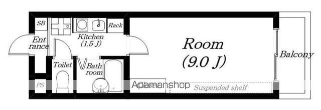 | 間取り詳細 | 洋室(9帖)、K(1.5帖) | ||