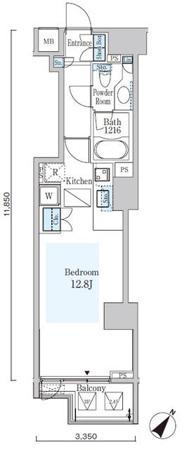 | 間取り | ワンルーム | 専有面積 | 34.55m2 |