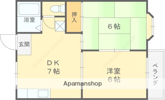 | 間取り詳細 | 洋室(6帖)、和室(6帖)、DK(7帖) | ||