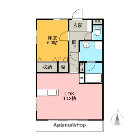 | 間取り詳細 | 洋室(6帖)、LDK(13.2帖) | ||