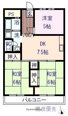 | 間取り詳細 | DK(7.5帖)、和室(6帖)、和室(6帖)、洋室(5帖) | ||