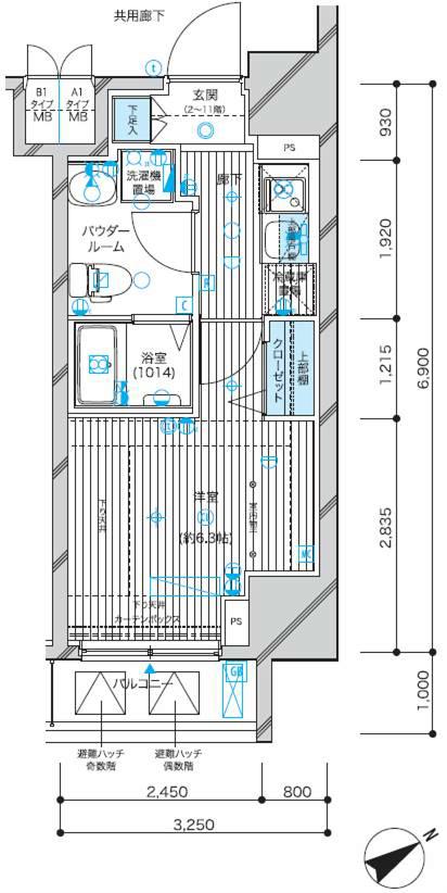 | 間取り | 1K | 専有面積 | 22.42m2 |