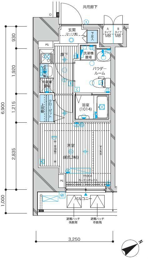 | 間取り | 1K | 専有面積 | 22.42m2 |