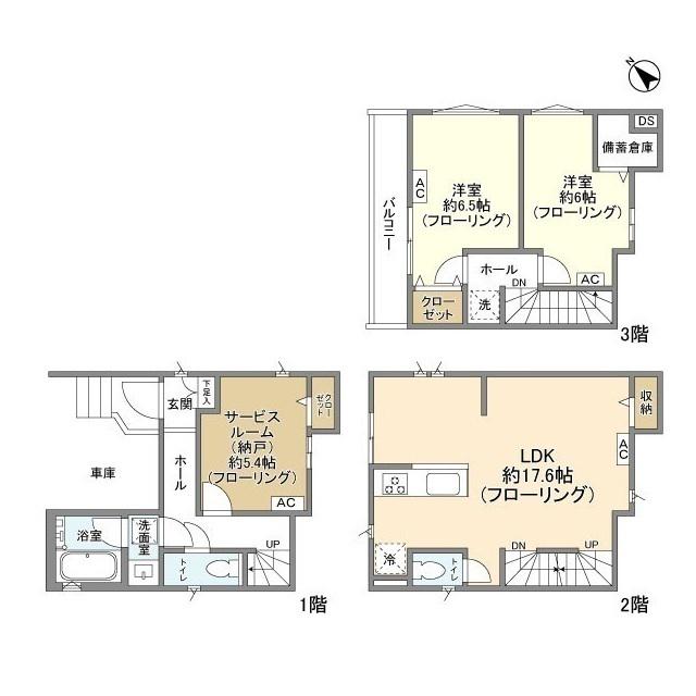 | 間取り詳細 | S(5.4帖)、LDK(17.6帖)、洋室(6.5帖)、洋室(6帖) | ||