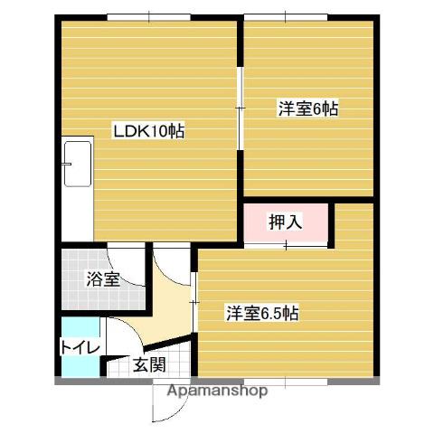 | 間取り詳細 | LDK(10帖)、洋室(6帖)、洋室(6.5帖) | ||