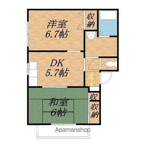 | 間取り詳細 | K(5.7帖)、洋室(6.7帖)、和室(6帖) | ||