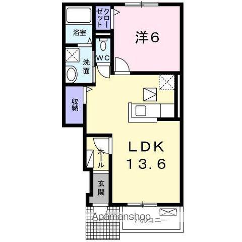 | 間取り詳細 | 洋室(6帖)、LDK(13.6帖) | ||